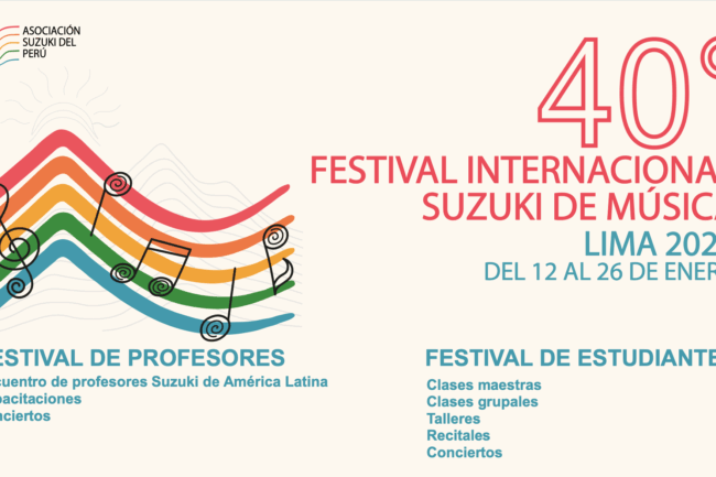 La Asociación Suzuki del Perú (ASP) es una asociación sin fines de lucro dedicada a la difusión de la pedagogía llamada Educación del Talento. Desde enero de 1983, realizamos festivales internacionales, en los cuales se ofrecen cursos de capacitación para músicos, profesores de aula y padres de familia. También dictamos clases para niños y durante el año tenemos nuestros Talleres Nacionales.